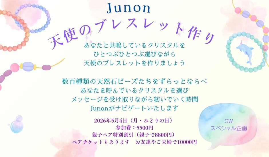 GW中、普段ご一緒できないお子様やお友達とぜひお越しください。パートナーと一緒にお揃いのブレスをお作りになってみてはいかがですか?